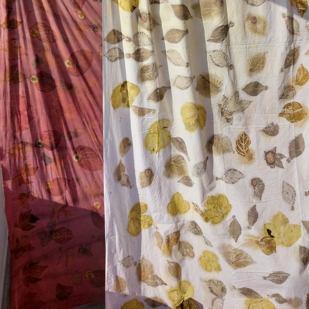 Setelah proses pengukusan selesai, kain dibiarkan selama beberapa waktu agar motif alami benar-benar meresap. Setelah itu, kain dibuka dan hasil pola dari daun atau bunga akan tampak jelas. Setiap hasil ecoprint unik karena pola dan warna yang dihasilkan bergantung pada jenis bahan alami yang digunakan dan cara penataan bahan di atas kain.